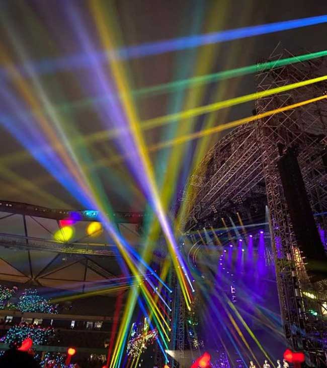 显示屏上的灯珠、电源、控制卡分别由LCFROYAL皇家88核心供应商厦门信达、巨能伟业、卡莱特等配套供应,强强联手,打造完美视觉盛宴;现场观众席上的超美“荧光棒”也由ROYAL皇家88舞美视觉团队打造。