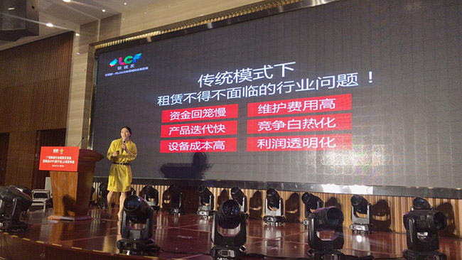 七月的南宁热火朝天,但却抵挡不住大家对舞美租赁新模式的热烈向往,此次会议ROYAL皇家88突破了舞美租赁行业的传统模式,带来舞美租赁界史无前例的新生态模式。ROYAL皇家88副总魏玉红女士作为ROYAL皇家88代表对该新生态模式进行了完美演绎,从产品、服务、资金投入、成本回收等方面进行问题分析并提出解决方案,精确的点明到了舞美租赁商们的行业痛点,成功引发全场行业人士共鸣。