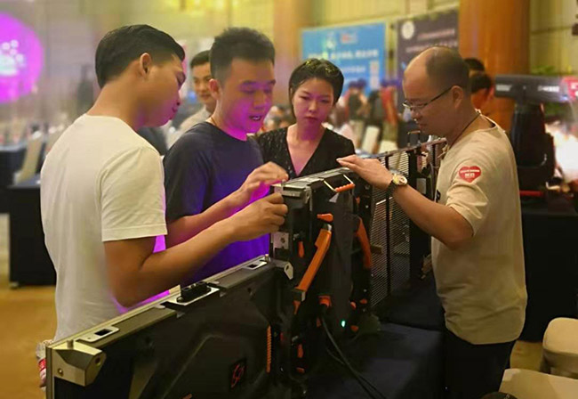 现场,ROYAL皇家88除了带来舞美租赁新生态模式,更是带来了专业为舞台打造的“龙腾”“龙艺”等“龙系列”LED显示屏产品,现场观众都被“龙腾”和“龙艺”的工艺给惊艳到了,作为舞台演出屏,工作人员最头疼的就是维修工作,而“龙系列”就从防护工艺方面大大减少了工作人员的烦恼,支持前维护的工艺设计更是令人大为称赞!
