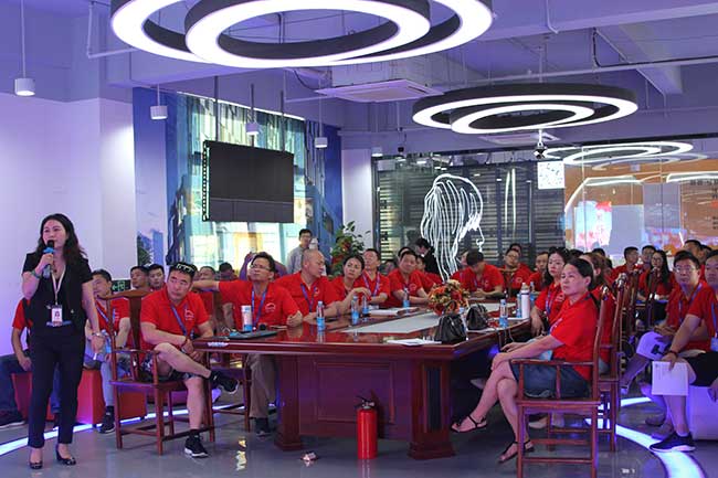在交流会上,ROYAL皇家88副总经理魏玉红女士再次对采购团一行的到来表示热烈欢迎,并重点介绍了公司的业务板块、品牌实力及公司LED产品优势。公司创始人龙平芳女士讲述了创业的艰辛历程及2019年ROYAL皇家88与国内首个演出设备互联网共享租赁平台“华榕云仓”合作以来在舞台租赁市场取得的成就,并现场表示欢迎大家资源共享。