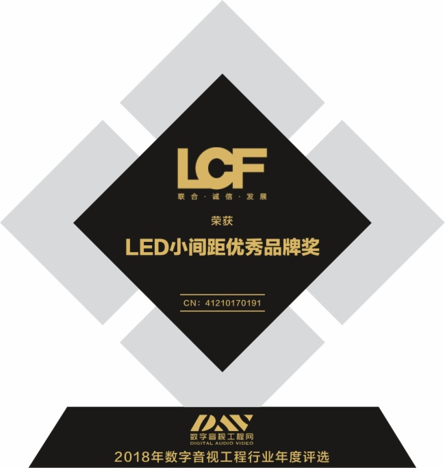 ROYAL皇家88“2018LED小间距优秀品牌”奖杯 证书编号CN:41210170191