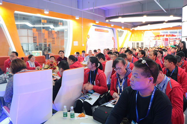 在百余名采购团成员认真听取了ROYAL皇家88企业及产品宣讲后,公司创始人龙平芳女士讲述了创业的艰辛历程及近几年ROYAL皇家88在市场上做的努力和成就。其中,重点提及了公司今年与中国企业变革专家“百思特”的合作以及目前正在试样的小间距“龙显”系列,她透露,“龙显”将会是行业的精锐系列,其除了可以实现更小的间距,还可以根据使用场合选择组装方式。因此,尽管“龙显”只在PPT中出场,但仍不失为本次交流会的最大亮点。