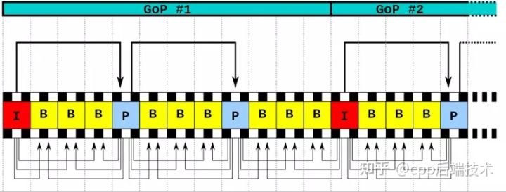 1. I帧即关键帧,记录了一个完整的图像,可以被直接解码显示,两个I帧中间的一组帧称之为一个GOP(group of picture);