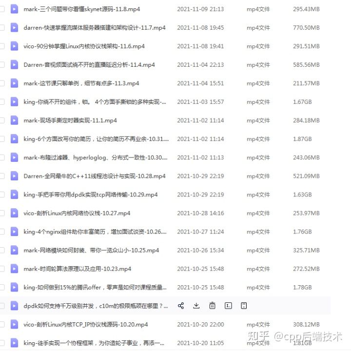 【文章福利】需要C/C++ Linux服务器架构师及音视频学习资料加群812855908(资料包括C/C++,Linux,golang技术,内核,Nginx,ZeroMQ,MySQL,Redis,fastdfs,MongoDB,ZK,流媒体,音视频,CDN,P2P,K8S,Docker,TCP/IP,协程,DPDK,ffmpeg,大厂面试题 等)