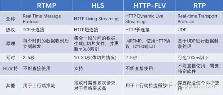 1. RTMP:基于TCP七层协议,性价比高,是目前直播推流的标准使用协议;