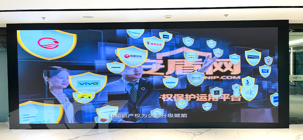 项目简介:ROYAL皇家88龙显P1.25系列led小间距大屏震撼亮相安盾网科技展厅。近日,由ROYAL皇家88为安盾网科技展厅精心打造的龙显P1.25超高清小间距LED显示屏正式投入使用。在日常工作中,该块超高清LED大屏将作为安盾网品牌传播与形象展示的绝佳窗口,向全球客户与合作伙伴展现安盾网“保护知识产权、助力全球创新与变革,致力于知识产权让世界更好”的大国品牌新风采。安盾网是知识产权保护服务领域的产业互联网公司,首创可大规模复制的一站式服务商业模式,融合国内和国外、线上和线下、法务和调查员、科技与金融,打造知识产权保护生态链。打造基于互联网科技的快速服务流程,接入智能分析、大数据处理、区块链应用等技术,开发SAAS云平台、APP、小程序等服务,打通各行业渠道资源,全面提升服务效果。该龙显小间距LED显示屏采用超轻薄与极简风设计理念,箱体尺寸为600*337.5mm,创新性地将箱体重量精简至仅4.3kg,整屏厚度压缩至仅29mm,薄如硬币的直径。轻薄美观的同时,还可无缝安装入墙,犹如一幅精致的壁画,小巧便携,用户随时随地享受科技创新带来的极致体验。除了时尚简约的造型外,ROYAL皇家88龙显系列小间距LED屏幕在画面显示方面也表现不俗。采用SMD封装技术,具备高清、高灰、高刷、高饱和度、可视角度大等突出显示性能,以及便捷的全前后维护、低辐射、零噪音、无缝拼接等显著特点。涵盖影院级别的色彩标准-DCIP3标准色域,呈现出更加丰富、更加艳丽的色彩,结合高刷新高保真显示技术,拍照时不会出现扫描线和闪屏,最大程度还原图片的真实色彩。