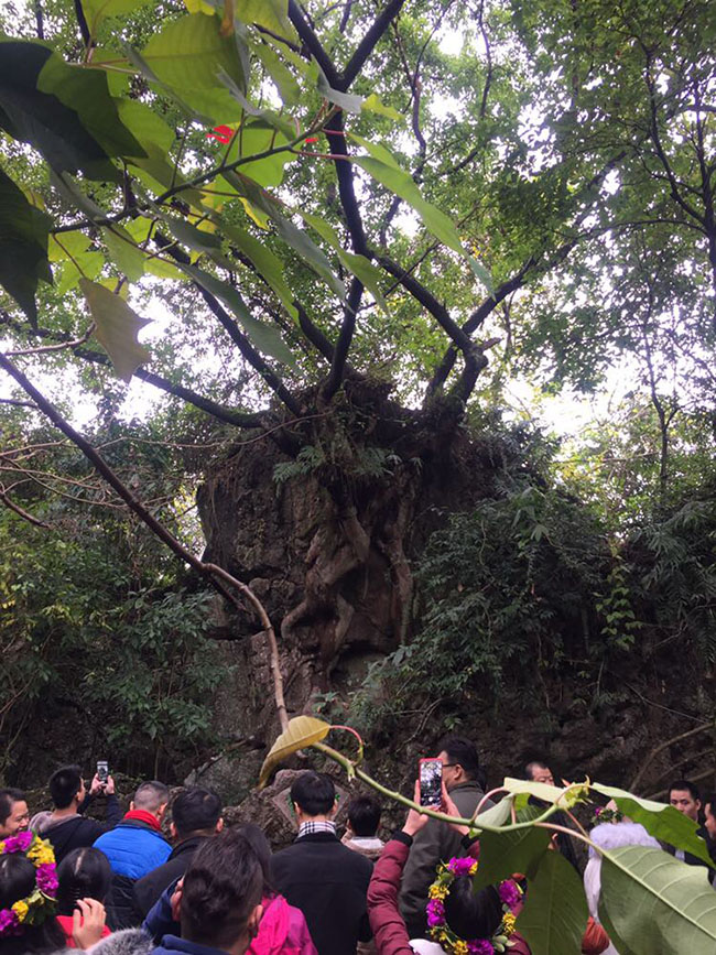 所谓美景藏在深处,沿着石阶蜿蜒而上,路过一凸起榕树,树底有石牌,原来这就是传说中的“美女榕”,榕树树根盘绕,枝节交错,颇像人形,但究竟如何分辨,大家一时也说不明白。