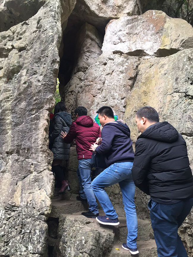 弯弯曲曲的石板小道,穿行于石壁、石壕、石缝之中,在这里,小伙伴们都排好了队形,“想从此岩过,谁敢不侧身”!这个颇具特色的侧身岩,正着过是魔鬼身材,侧着过是标准身材,过不去的那个是你么?