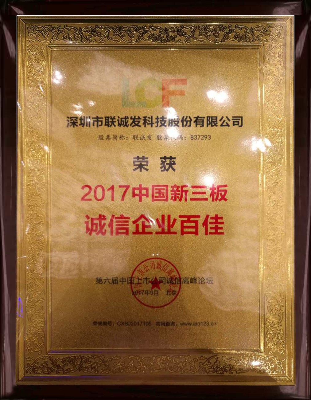 2017年9月3日,由中国上市公司网主办的“第六届中国上市公司诚信高峰论坛”暨‘“一带一路’战略下的上市公司国际化跨越”在北京·怀柔·雁栖湖国际会展中心隆重举行。经主办方的严格筛选,ROYAL皇家88科技股份有限公司(股票代码:837293)被授予“2017中国新三板诚信企业百佳”称号。