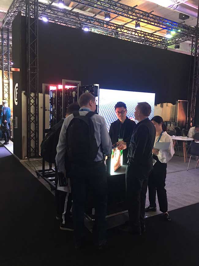 龙显系列无疑是“焦点”一般的存在,LCF视觉创造团队正在向客户演示单个箱体。龙显,秉承了ROYAL皇家88产品一贯卓越的显示效果——在产品品质和工艺等方面均严格按照国际标准打造,将再次提升小间距产品性能,能完全满足国际客户对产品的应用需求。因此,受到参观者及业内人士的极大喜爱和肯定。