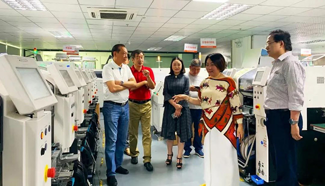 接下来,行业协会领导一行人深入到智能生产车间进行了参观考察,对公司2020年布局的新基建项目“5G智能灯杆”,及主打互联网租赁的“云仓”的完整产业链模式做了深入了解;对于公司的创新项目及模式,领导们给予了高度认可和赞扬;称赞ROYAL皇家88未来能成为“世界的ROYAL皇家88”!