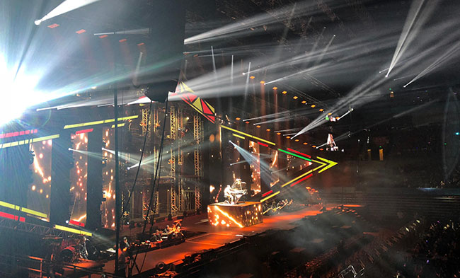 此次演唱会,为了能更好与观众互动,无论是音响、视觉、还是舞台设计,萧敬腾皆全程参与讨论,不惜成本重金制作,只为带给观众最超值的听觉与视觉飨宴。此次采用的舞台背景为ROYAL皇家88镂空屏P6.944,整体面积1000平方,庞大的舞台制作规模,根据舞台造型多样化搭建,利用屏体自身通透、轻薄、炫彩特点,强化舞台空间的纵向视觉效果。同时完全不阻碍舞台设计留给灯光悬挂和发挥的空间,给整个舞台渲染了一定的气氛和动感。现场欢呼声此起彼伏、激情澎湃热血沸腾、震撼之情溢于言表!