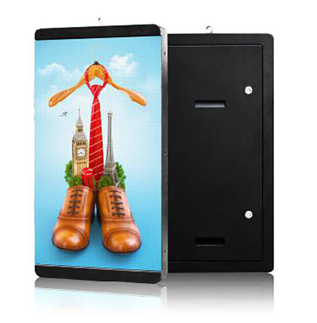 优势:全铝质模组,外表不需要钢化玻璃保护,降低反射线和光衰值;高清LED显示屏幕,具有很大的视角和可视区域;远程管理便捷,可以任意在网络终端运营管理,关键的讯息能够即时的进行发布。被广泛用在城市步行街、地铁、车站、商场、小区、机场等区域。