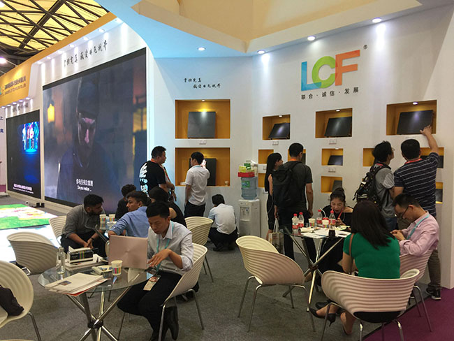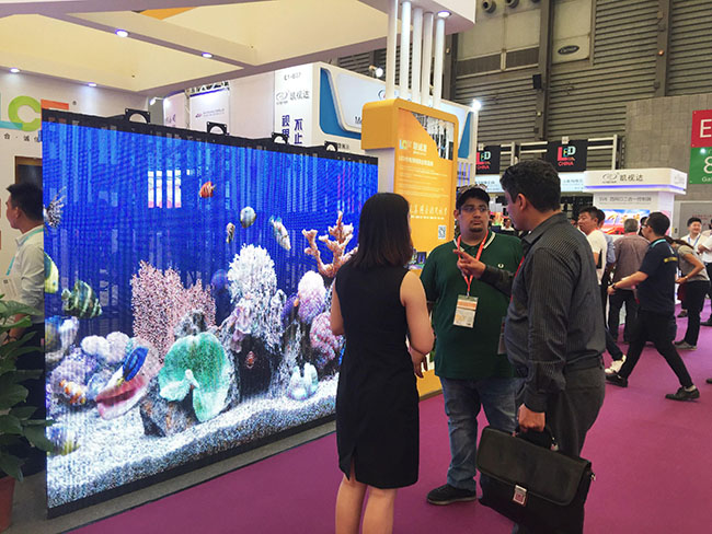 LED显示屏、炫彩的地砖屏、通透的镂空屏……将产品的优势展现得淋漓尽致,霸气、自信与实力尽显!前来咨询的客商更是络绎不绝,愉快的交流,耐心的解答,无一不让观展者感受到与众不同。